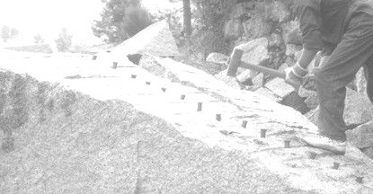 การตัดหินเริ่มด้วยการใช้สิ่วโลหะร่วมกับค้อนไม้หรือท่อนไม้ทำการถากร่องลงบนหินที่ราดน้ำเอาไว้