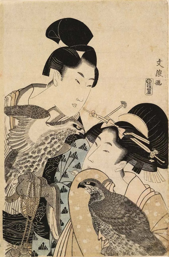 เนื่องจากในงานศิลปะยุคนั้นศิลปินนิยมสร้างงานวาดอิสตรีที่เป็นโอยรันหรือโสเภณีชั้นสูง เกอิชา และอนนะกาตะ (女形) ตัวนางจากละครคาบูกิ ทั้งสามอาชีพมีความโดดเด่นในการสะท้อนเทรนด์ความงามในยุคดังกล่าว อนนะกาตะเองก็มักจะมีบทบาทการแสดงเป็นโอยรันซึ่งมาพร้อมพล็อตทำนองโศกนาฏกรรมรักระหว่างคนสองชนชั้น คนญี่ปุ่นเองก็มีรสนิยมชื่นชอบความเศร้าอันงดงามไม่แพ้ชาติอื่น ส่งผลให้ตัวงานศิลปะเองก็เก็บเอาภาพดังกล่าวมาบันทึกเอาไว้ให้ได้เห็นบ้าง