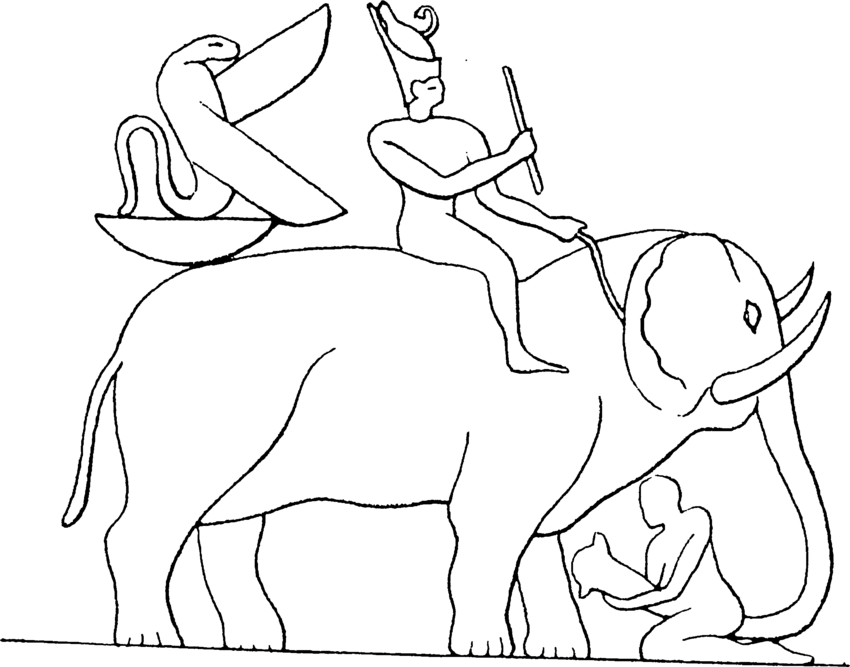 A Meroitic king riding an elephant bareback, scene from a column drum in a temple at Musawwarat es Sufra. (From Lepsius 1849 Denkmaler V, Blatt 59-60)