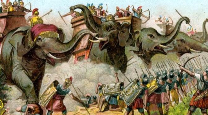 Featured Image : The Elephants of Pyrrhus, c1900. Scene from a battle between Pyrrhus (318-272 BC) and the Romans. (Credit: The Print Collector/Print Collector/Getty Images)