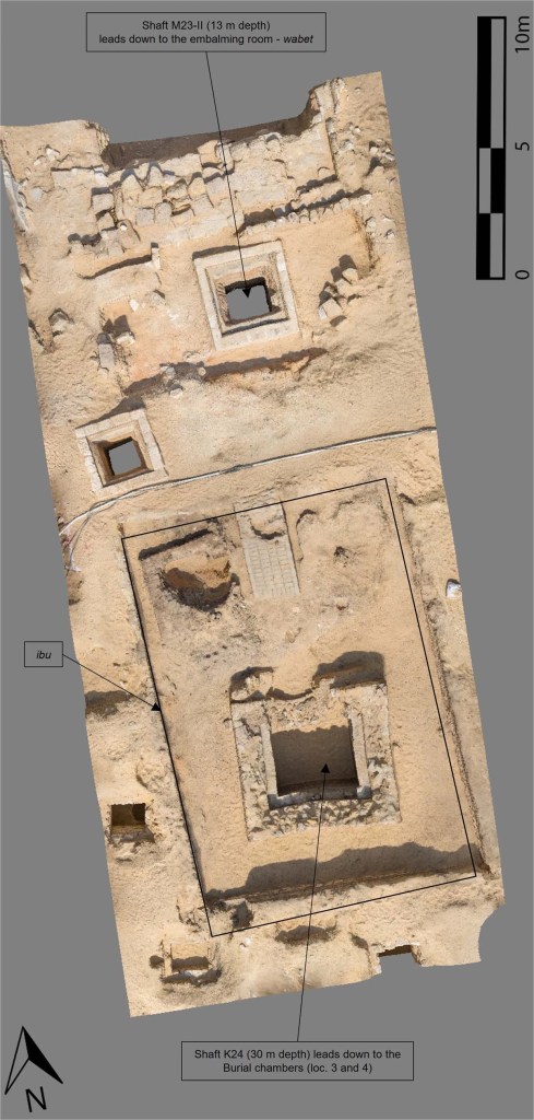นักโบราณคดีมีการพบสถานปลงศพแห่งหนึ่งในซัคคารา ดำเนินการขุดค้นไปเมื่อค.ศ.2016 โดยรามาดัน ฮุสเซน (Ramadan Hussein c.1971-2022) นักอียิปต์วิทยาผู้ล่วงลับ สถานประกอบพิธีศพมีปากปล่องอยู่ด้านบนพื้นดิน ตีช่องลึกตรงลงมายังใต้ดินเป็นห้องดองศพกับโถงสุสาน ซึ่งเป็นจุดที่มีการค้นพบภาชนะใส่สารดองศพต่างๆ กำหนดอายุราวราชวงศ์ที่ 26