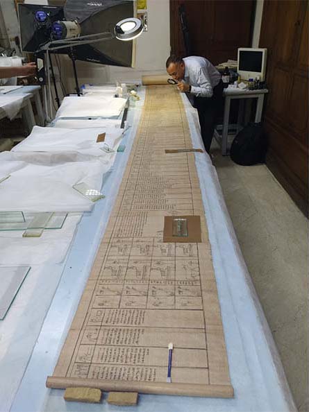 Mostafa Waziri, examining the extraordinary document. Photo Source: Supreme Council of Antiquities