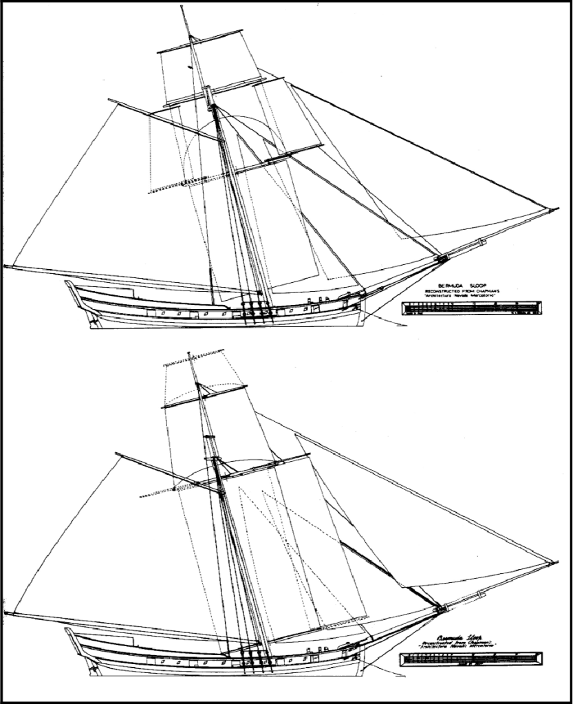 Sloop (from Howard I. Chappelle, The History of American Sailing Ships, p. 12) by Henry Rusk,Martha’s Vineyard Museum