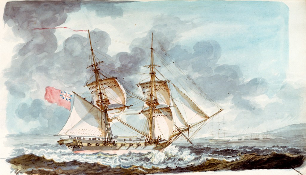 Featured Image : A Bermuda sloop, privateering on the Spanish Main.Published by Edward Orme, 1 January, 1807.Public Domain.